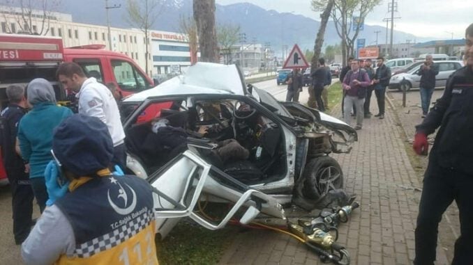Kazada araç sürücüsü ile araçta bulunan Hamza G. (26) araçta sıkıştı. Çevredeki vatandaşların ihbarı üzerine kaza yerine sağlık ekipleri, itfaiye arama kurtarma ve polis ekipleri sevk edildi. Gelen ekipler araç içerisinde sıkışan yaralıları kurtarmak için uzun süre uğraştı.