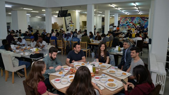 Oruçların açılmasının ardından Rektör Prof. Dr. Ahmet Saim Kılavuz ve üniversite yöneticileri, öğrencilerle sohbet etti.